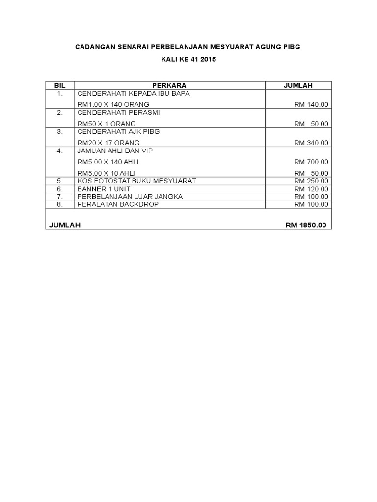 Cadangan Senarai Perbelanjaan Mesyuarat Agung Pibg Pdf